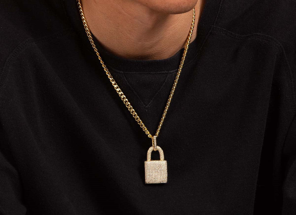 iced out gold lock pendant