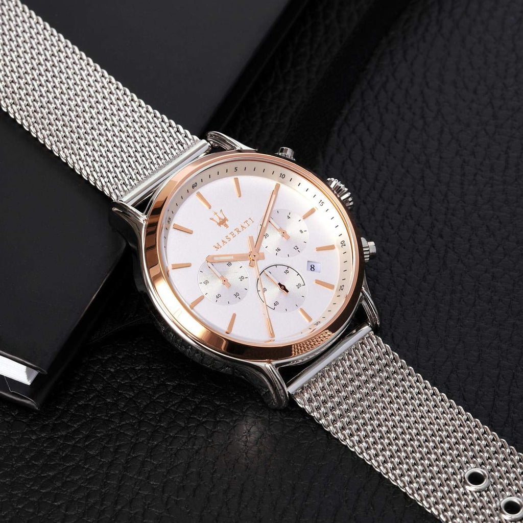 Maserati watches, produced in collaboration with Morellato, an Italian company specializing in jewelry and wristwatches since the 1930s, debuted their first line in 2012 to immediate success. These watches perfectly encapsulate the style, craftsmanship, and expertise synonymous with the Maserati brand. Featuring the iconic trident logo on the dial and crown, their designs draw inspiration from classic Maserati elements such as grilles, rims, counters, dashboards, and fine leather upholstery, reflected in the straps' colors and detailing. Most importantly, Maserati watches deliver a distinctive elegance and flair that embody the essence of the Maserati touch, making them truly unique in the world of timepieces.