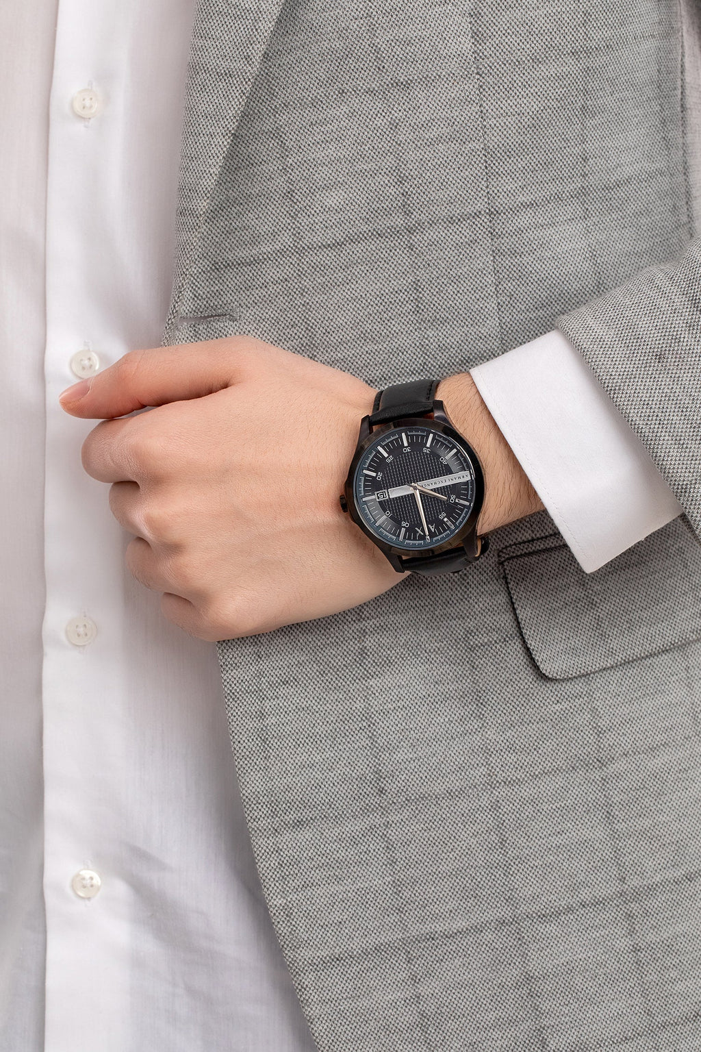 Second Markers: | Minute Markers around the outer rim. The Armani Exchange logo appears at the 12 o'clock position |