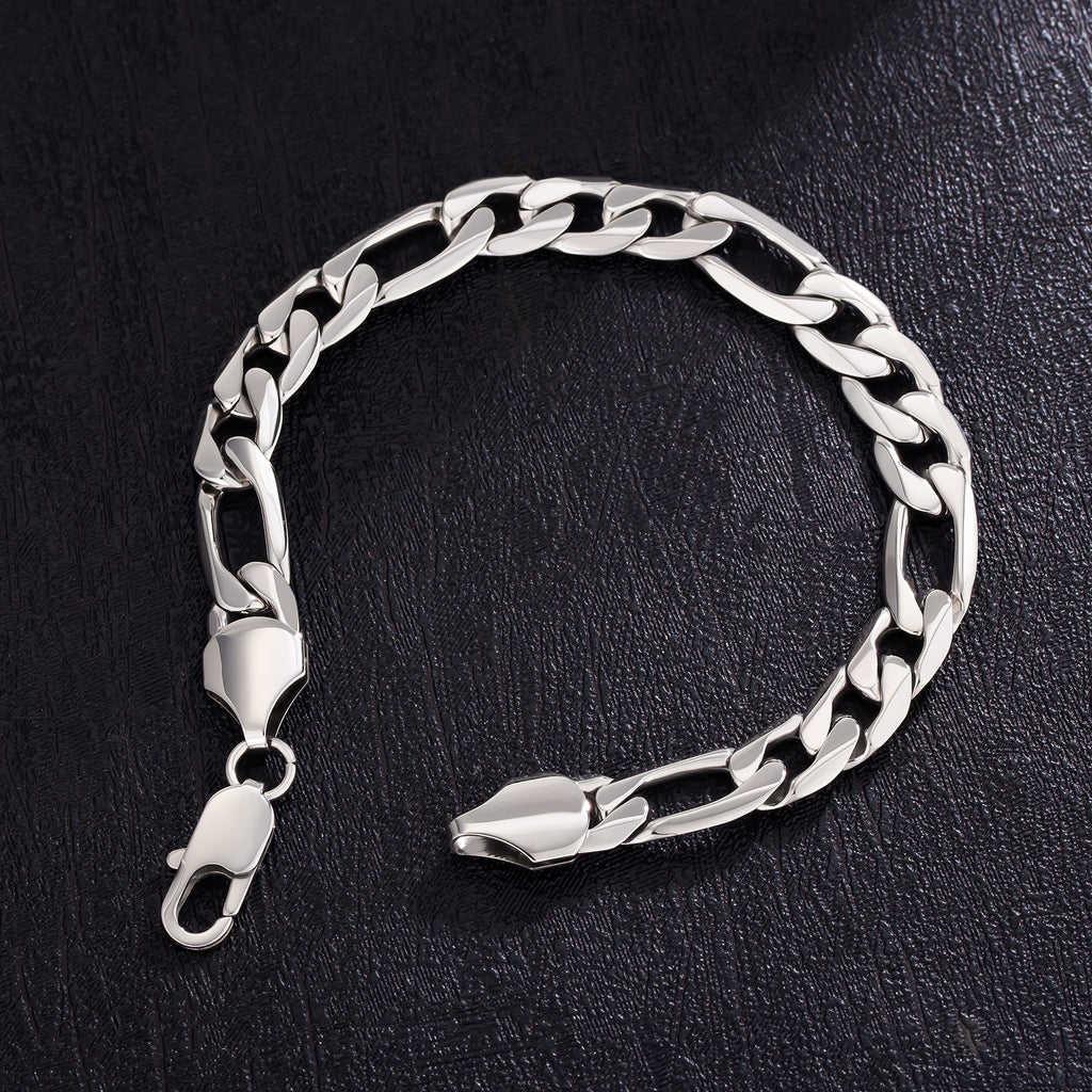 Get the best of both worlds with the Big Daddy 9mm Steel Figaro Silver Bracelet. This stylish and strong bracelet features 9mm steel Figaro links with a sophisticated gold plating and a secure clasp. Perfect for everyday wear or special occasions, this versatile piece will make a lasting impression. Upgrade your jewellery collection today!